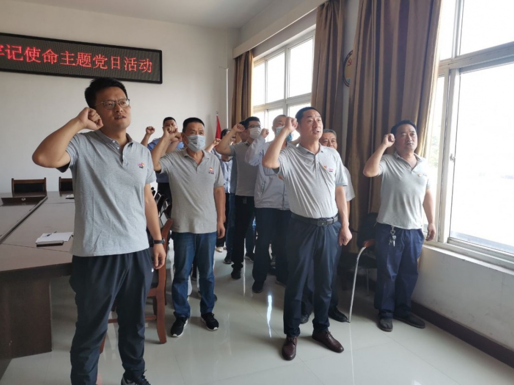 在總經(jīng)理徐正本同志的帶領下,黨員同志們神情肅穆、舉起右拳,重溫入黨誓詞?!拔抑驹讣尤胫袊伯a(chǎn)黨……隨時準備為黨和人民犧牲一切,永不叛黨?!辩H鏘恢宏的誓詞,強烈震撼著在場的每一位黨員,一字一句,神圣豪邁,體現(xiàn)了黨員對中國共產(chǎn)黨的無限忠誠。